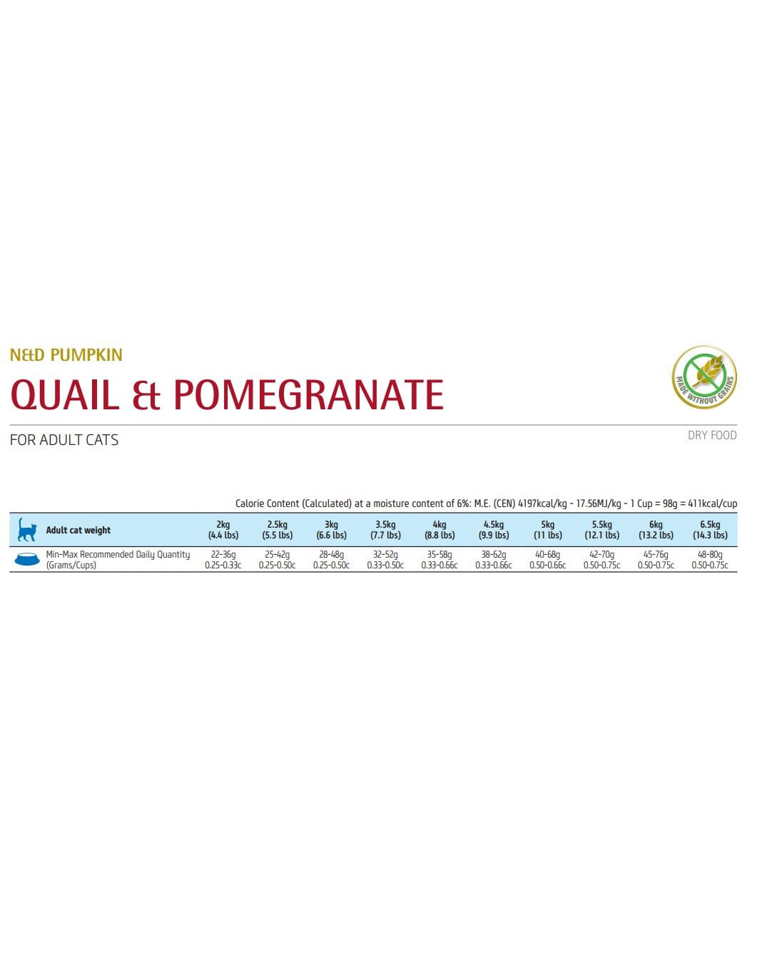 Sausas ėdalas suaugusioms katėms, be grūdų ir glitimo. Moliūgų priedas palaiko katės sveikatą. Ėdale nėra dirbtinių priedų.