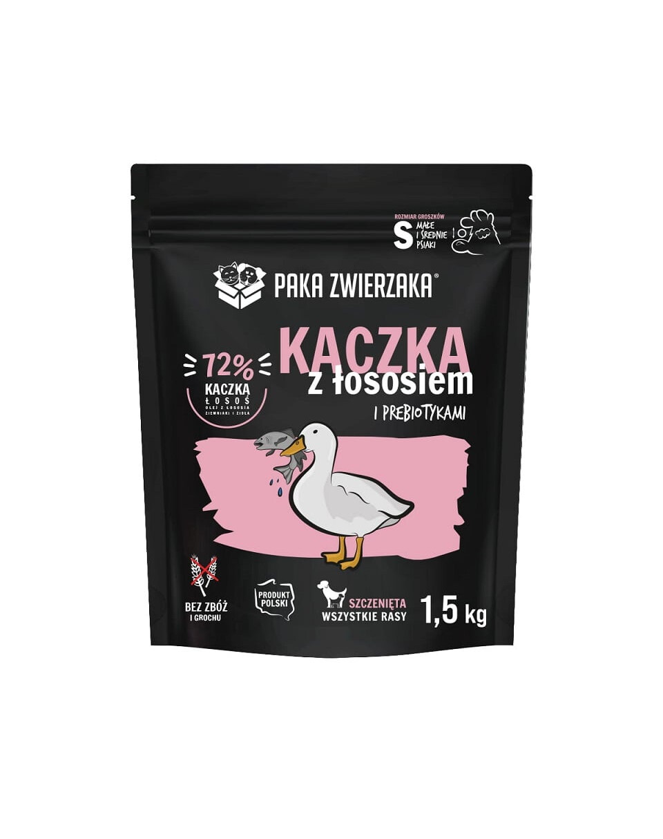 Puikiai subalansuotas SUPERPREMIUM kokybės sausas ėdalas šuniukams be grūdų, žirnių, kukurūzų, sojos, konservantų ir dirbtinių dažiklių. Aukščiausios kokybės ančių mėsa, lašiša, daržovės ir žolelės, gaunamos iš vietinių tiekėjų, užtikrina gerą skonį ir lengvą virškinamumą. Ideali formulė šunims su jautriu skrandžiu ir netoleruojantiems grūdų.
