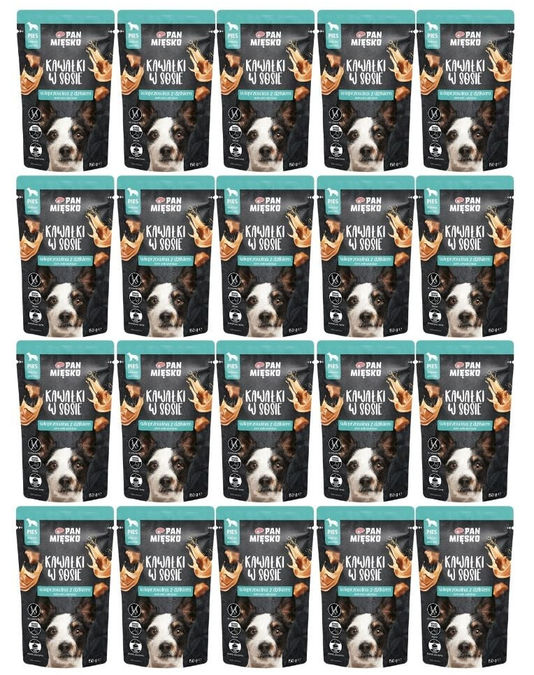 Sultingi gabaliukai, panardinti aromatingame padaže, patenkins net ir išrankiausius gurmanus! Tai tinkamai subalansuotas ir mėsos turtingas patiekalas, kuris bus ne tik skanus kasdienis maistas, bet ir ypatingas priedas ar topperis maistui! Receptas papildytas lašišų aliejumi ir džiovintomis alaus mielėmis, kad jūsų šuns kailis būtų gražus ir blizgus, inulinu virškinimui palaikyti, taip pat sveikais žolelėmis.