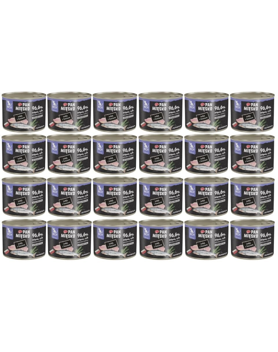 INGRIDIENTAI: 54% kalakutiena (25% mėsa, 9% kepenys, 9% plaučiai, 8% skrandžiai, 3% širdys), 28,7% sultinys, 14% lašiša (visa žuvis), 1,9% lenkiški obuoliai, 1% mineralai, 0,2% lašišų aliejus, 0,1% džiovintos alaus mielės, 0,1% rozmarinas.