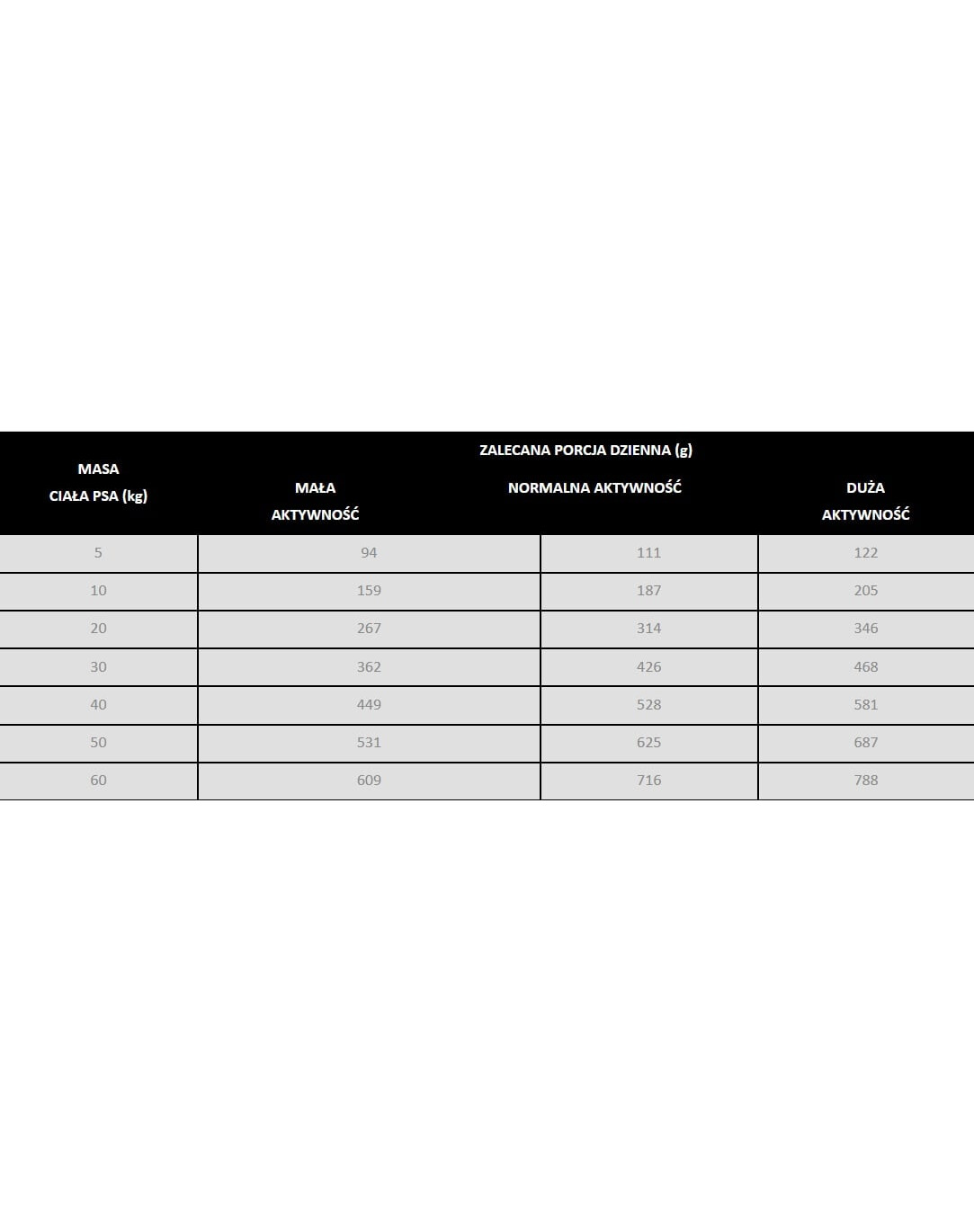 Lentelėje nurodyti paros poreikiai yra orientaciniai. Kiekvienas šuo yra skirtingas ir turi skirtingus poreikius. Stebėkite savo augintinį ir, jei reikia, padidinkite arba sumažinkite jo paros maisto porciją. Nepamirškite užtikrinti jam nuolatinę prieigą prie šviežio vandens!
