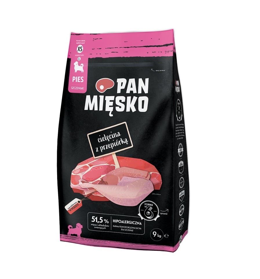 Susipažinkite su hipoalerginiu sausu šunų ėdalu iš Pana Mięsko. Jo sudėtyje yra kruopščiai atrinktos mėsos su sultingais lenkiškais obuoliais, sveikų daržovių ir vertingų maistinių medžiagų, kurios teigiamai paveiks jūsų šuns sveikatą ir būklę. Mūsų receptus ruošia ekspertai, kad jūsų keturkojis draugas gautų tai, ko jam reikia. Jūsų šuo nusipelno geriausio.