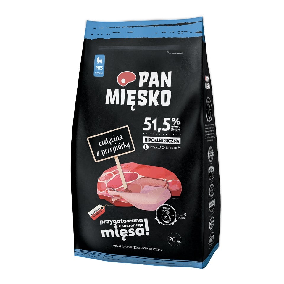 Susipažinkite su sausais šunų maistais Pan Miškas. Juos išskiria kruopščiai atrinkti ingredientai su sultingais lenkiškais obuoliais, sveikais daržovėmis ir vertingais maistiniais komponentais, kurie teigiamai paveiks jūsų šuns sveikatą ir būklę. Mūsų receptai buvo paruošti specialistų, kad suteiktume jūsų keturkojui draugui būtent tai, ko jam reikia. Jūsų šuo nusipelno visko, kas geriausia.