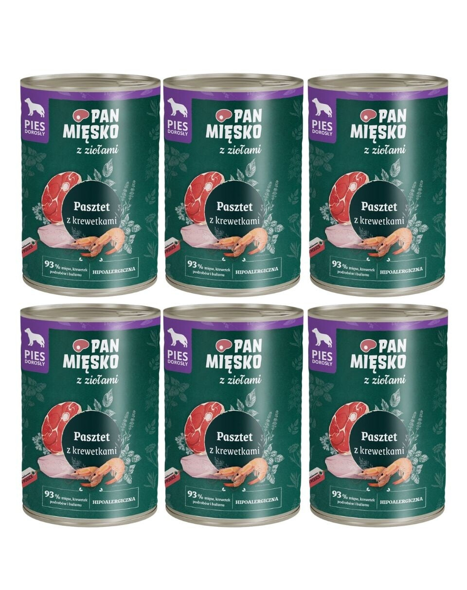 PAN MIŠKAS su žolelėmis PAŠTETAS SU KREVETĖMIS PILNAVERTĖ ŠLAPIŲ MAISTAS SUaugusiems ŠUNIMS