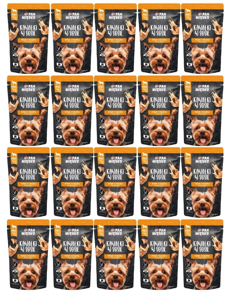 Sultingi gabaliukai, panardinti į aromatingą padažą, patenkins net išrankiausius gurmanus! Tai tinkamai subalansuotas ir mėsos turtingas patiekalas bus ne tik skanus kasdienis maistas, bet ir ypatingas priedas ar topperis maistui! Receptūra papildomai praturtinta lašišų aliejumi ir džiovintomis alaus mielėmis, kad šuo turėtų gražų blizgantį kailį, inulinu virškinimo palaikymui, taip pat sveikais žolelėmis.
