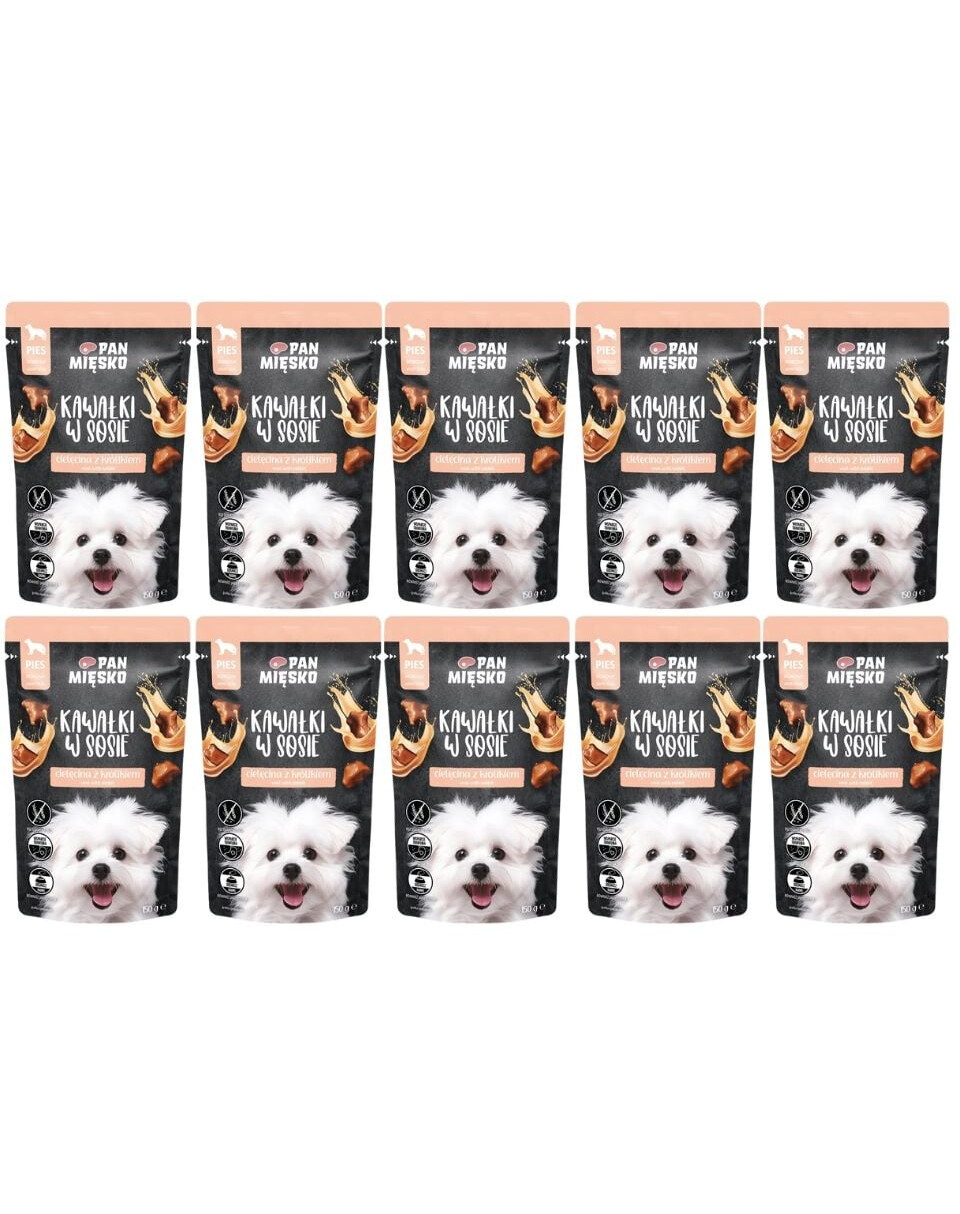 Sultingi gabaliukai, panardinti į aromatingą padažą, patenkins net išrankiausius gurmanus! Tai tinkamai subalansuotas ir mėsos turtingas patiekalas, kuris bus ne tik skanus kasdienis maistas, bet ir ypatingas priedas ar topperis maistui! Receptūra papildyta lašišų aliejumi ir džiovintomis alaus mielėmis, kad jūsų šuns kailis būtų gražus ir blizgus, inulinu virškinimo palaikymui, taip pat sveikais žolelėmis.