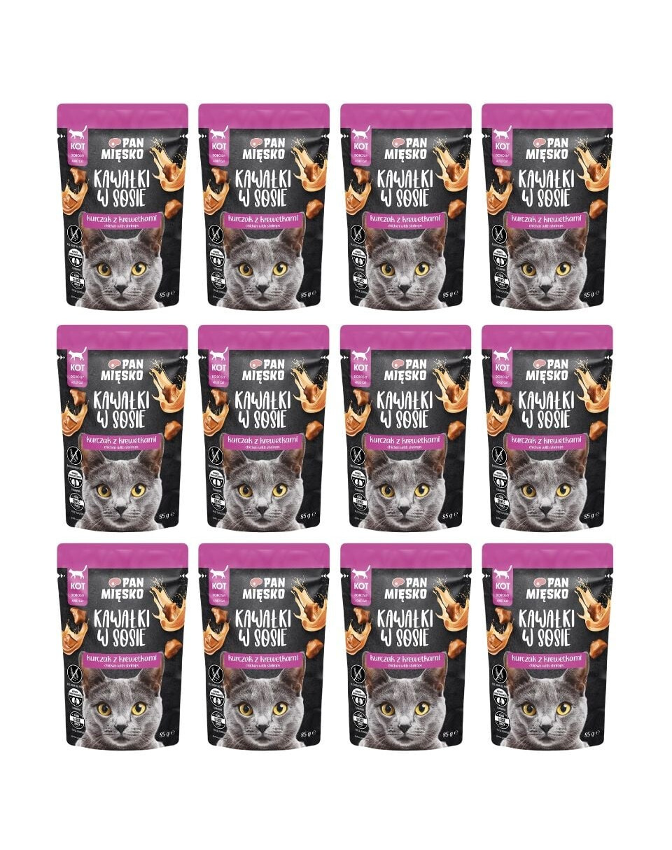 INGREDIENTAI: vištiena 71 % smulkintų gabaliukų* (mėsa 52 %, kepenys, skrandžiai), krevetės 8 % smulkintų gabaliukų*, jautienos baltymai 3 %, tapiokos krakmolas, mineraliniai komponentai, džiovintos spanguolės 0,2 %, lašišų aliejus 0,2 %, džiovintos alaus mielės 0,2 %, bazilikas 0,1 %. *Gabaliukai sudaro 52 % galutinio produkto.