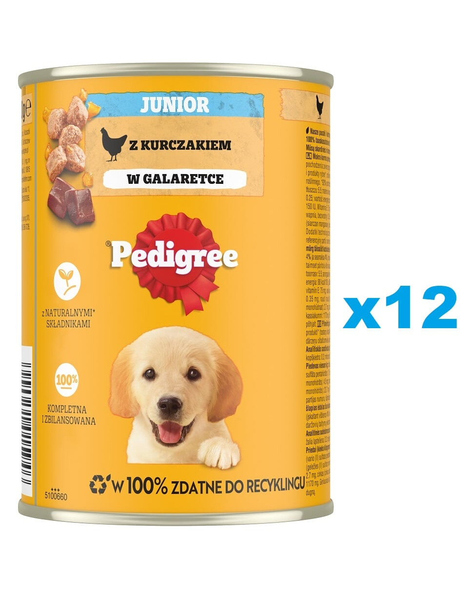Tavo augintinis mėgausis švelniais, mėsos gabalėliais su vištiena aromatinguose drebučiuose. Šis maistas pritaikytas besivystančiai virškinimo sistemai – lengvai virškinama vištiena užtikrina lengvą įsisavinimą. Receptūra praturtinta vitaminu E, kuris turi antioksidacinių savybių ir palaiko natūralius organizmo apsaugos mechanizmus. Subalansuotas kalcio ir fosforo kiekis stiprina kaulus. Rinkdamasis PEDIGREE Junior, padedi savo augintiniui augti sveikam ir laimingam.