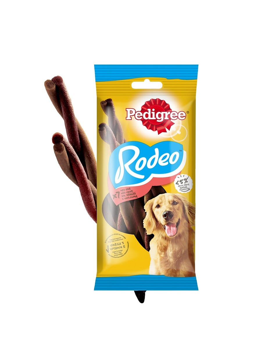 Kad patenkintumėte savo šuns poreikį kramtyti ir kąsti, rinkitės PEDIGREE Rodeo. Lanksčios spyruoklės su jautiena puikiai tinka kaip skanus užkandis. Skanus skanėstas patenkina kramtymo ir kramtymo poreikį ir suteikia jūsų šuniui įtraukiantį užsiėmimą. Šio papildomo ėdalo sudėtyje nėra dirbtinių dažiklių ir kvapiųjų medžiagų. Užkandyje yra kalcio, kuris būtinas sveikiems dantims ir stipriems kaulams. Natūralus malonumas jūsų šunų draugui.