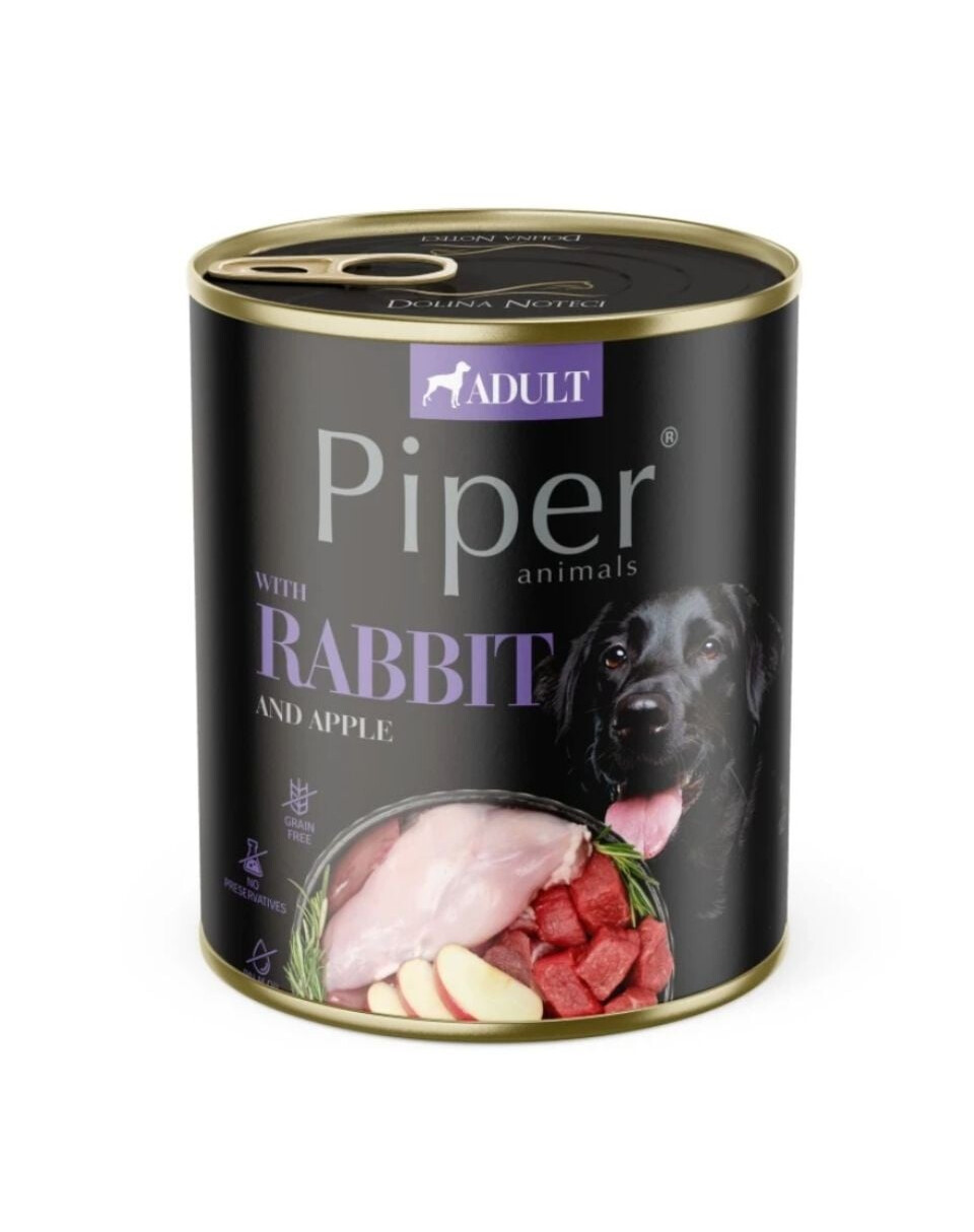 PIPER su triušiena ir obuoliais yra visavertis drėgnas ėdalas suaugusiems visų veislių šunims.