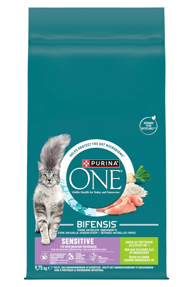 Receptas buvo sukurtas specialiai jautriems ir išrankiems katėms. Jame yra pažangi PURINA ONE BIFENSIS formulė su naudingomis funkcionaliosiomis bakterijomis Lactobacillus, kurių imunitetą stiprinantis poveikis buvo moksliniais tyrimais patvirtintas. Cikorijos, natūralaus prebiotiko, papildymas padeda palaikyti žarnyno mikrobiomo pusiausvyrą ir tinkamą virškinimą. Kalakutiena, kaip pagrindinis ingredientas, suteikia aukštos kokybės baltymų ir amino rūgščių, padedančių išlaikyti stiprius raumenis, o labai virškinama formulė be kviečių skatina gerą maisto toleranciją.