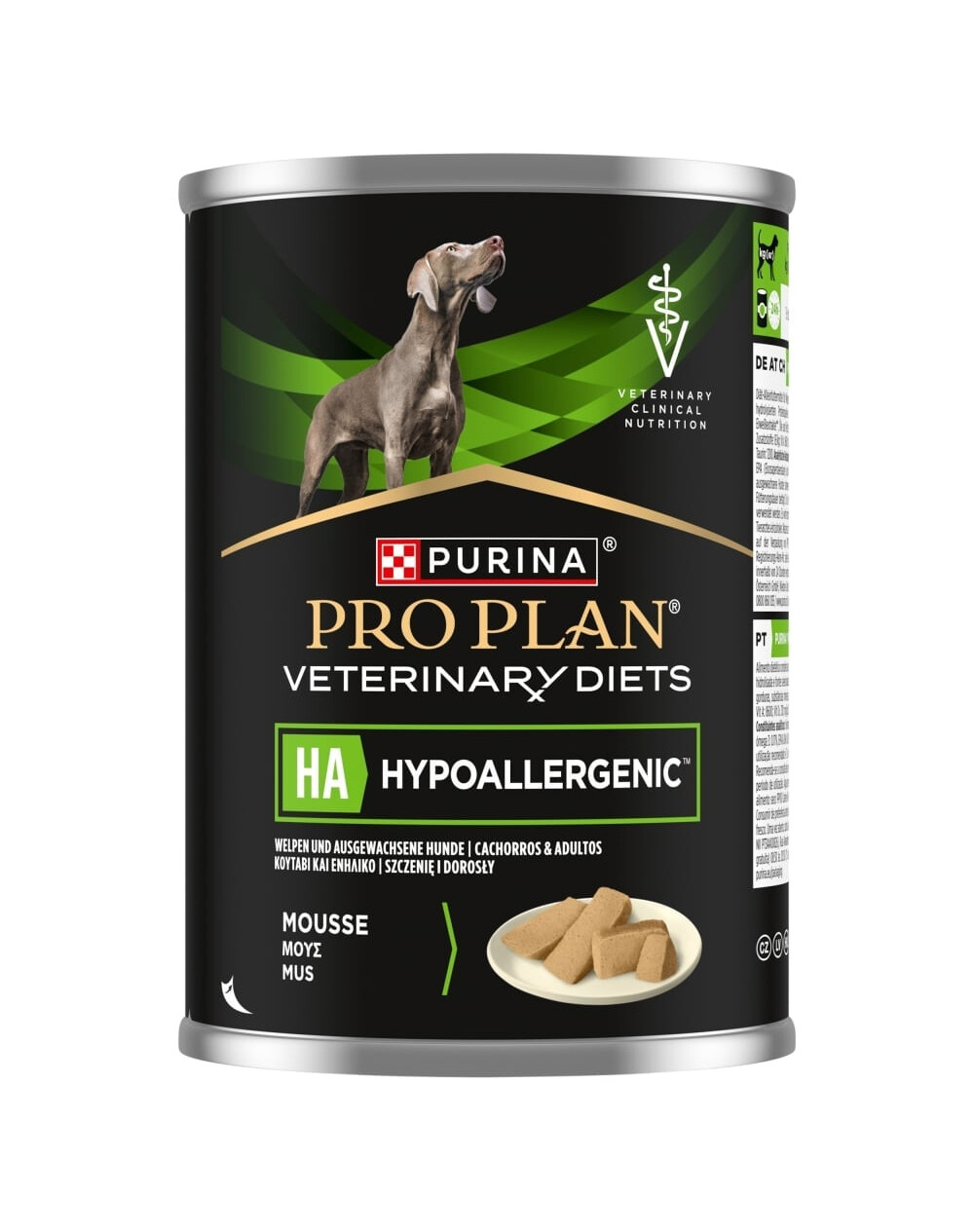 Purina PRO PLAN Veterinary Diets HA Hypoallergenic yra dietinis, drėgnas maistas švelnaus putų pavidalo, skirtas šuniukams ir suaugusiems šunims, turintiems maisto netoleranciją ir padidintą jautrumą.