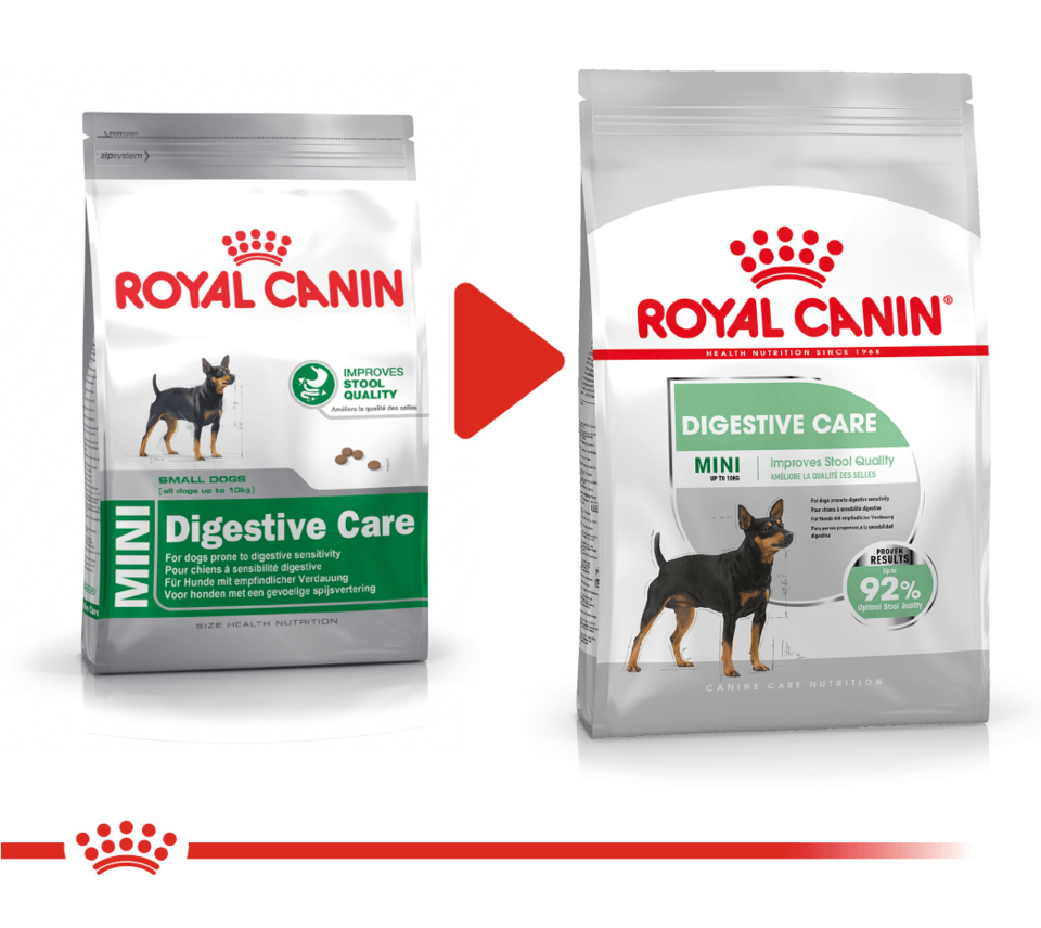 ROYAL CANIN® Digestive Care Mini yra labai skanus maistas, tinkantis šunims, kurių kūno svoris iki 10 kg, kurio formulė buvo specialiai sukurta šunims, turintiems jautrią virškinimo sistemą