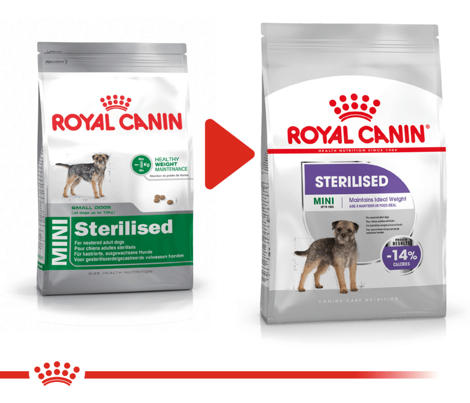 ROYAL CANIN® Sterilised Mini yra ėdalas, tinkamas iki 10 kg svorio šunims po sterilizacijos, kuriame yra aukštos kokybės ingredientų ir kuris palaiko jūsų šuns sotumo jausmą, kad jis išliktų liesas ir aktyvus.