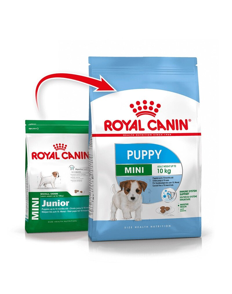 Royal Canin Mini Junior – specialiai subalansuotas šunų maistas skirtas mažų veislių (suaugusių svoris yra nuo 1 iki 10 kg) jauniems šuniukams iki 10 mėnesių amžiaus. Stiprina natūralią šuniuko organizmo apsaugą, užtikrina harmoningą augimą, mažina dantų apnašų kiekį.