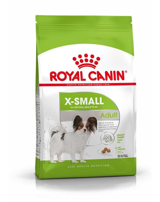 Royal Canin X-Small Adult – specialiai subalansuotas šunų maistas skirtas suaugusiems labai mažų veislių šunims (iki 4 kg svorio), nuo 10 mėnesiių iki 8 metų amžiaus. Padeda išlaikyti sveiką šlapimo sistemą, sveiką odą ir kailį, mažina dantų apnašų kiekį. Mažos granulės.