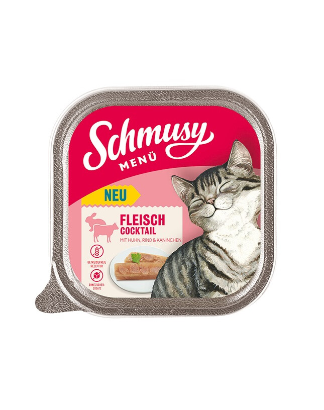 "Schmusy Menü" yra idealus kasdienis maistas mažiesiems tigriukams. Su visais reikalingais vitaminais ir mineralais tai puikus visavertis maistas kiekvienai dienai. Šis patiekalas gaminamas iš vištienos, jautienos ir triušienos mėsos kokteilio. Jame yra pakankamai taurino, jis yra be grūdų ir be pridėtinio cukraus - tai ypač subalansuotas maistas.