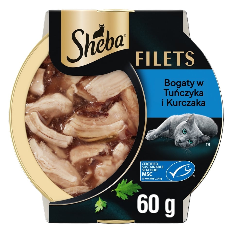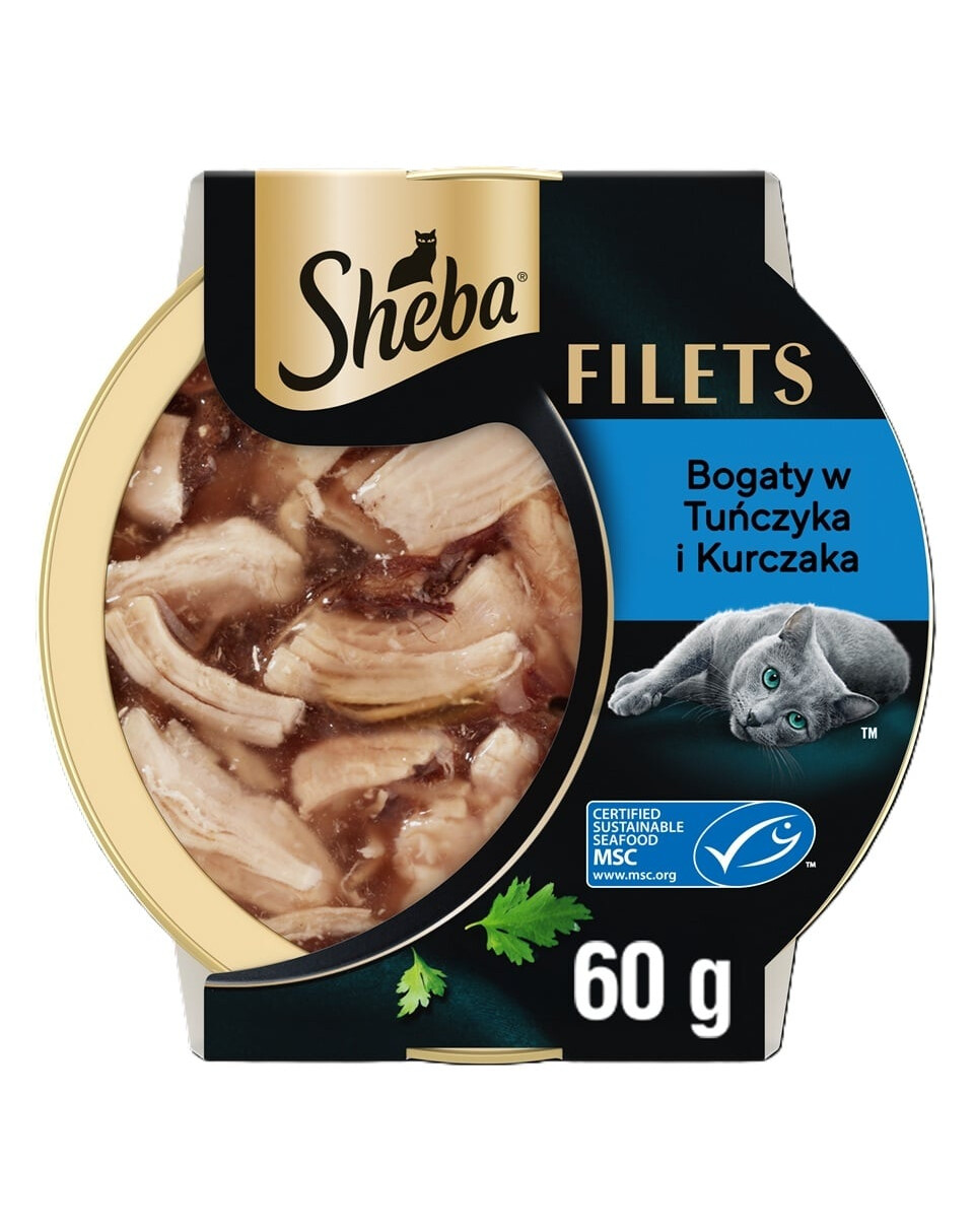 • Kompozicija kruopščiai atrinktų, švelnių filečių skaniame padaže. Viliojanti drėgno maisto receptūra su tekstūra, kurią jūsų katė mylės. Prieinama patogiose, perdirbamose SHEBA 60 g dėžutėse.