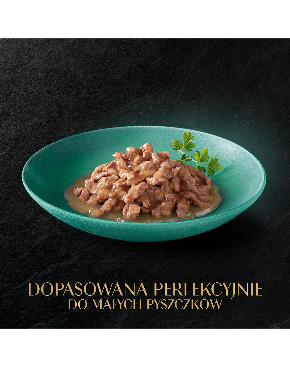 Vištienos gabaliukai: Sudėtis: mėsa ir gyvūninės kilmės produktai* (įskaitant vištieną 4 % gabaliukų**), augalinės kilmės produktai, mineralai, cukrus. *94 % natūralios kilmės. **Vištienos gabaliukai sudaro 49 % produkto.