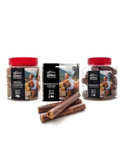 Natūralūs skanėstai pagaminti iš šernienos. Pagaminta tik iš natūralių ingredientų pritaikant džiovinimo procesą. Be dirbtinių priedų ar konservantų.