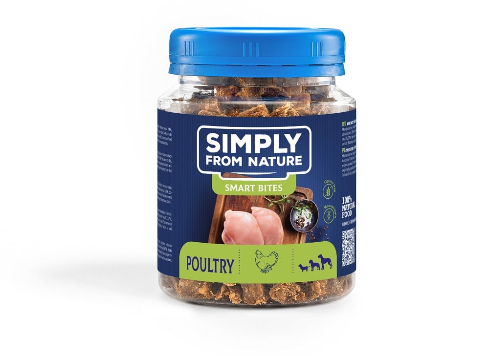 Vienabaltyminiai mėsos dresuotojai be grūdų iš " Simply from Nature". Jie palengvina ir padaro malonesnį kiekvieną mokymą ir žaidimą su jūsų šunimi! Viliojantis paukštienos dresiruoklių kvapas skatina jūsų šunį atlikti užduotis.