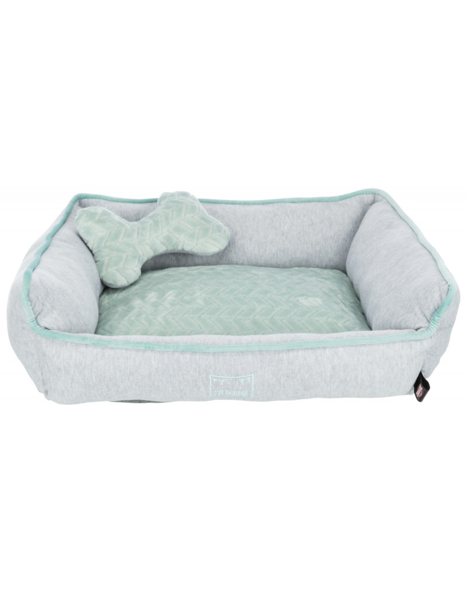 Minkšto trikotažo ir pliušo šuniuko lova. Jame yra poliesterio vilnos užpildas. Prie lovytės pridedamas žaislinis kaulas.