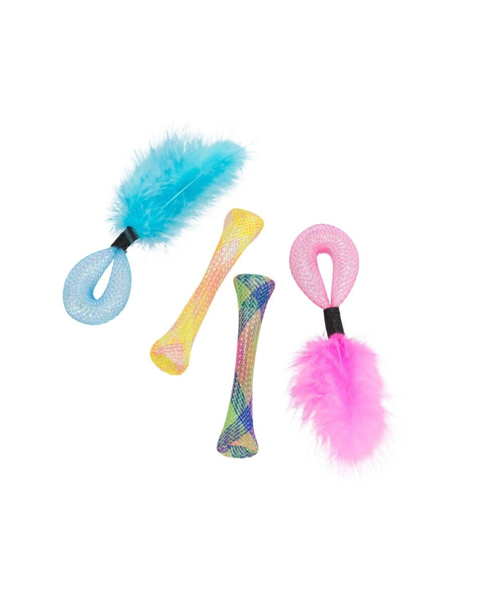 Žaislai praturtinti natūralia katžole, kuri stimuliuoja daugumą kačių ir skatina jas žaisti ilgiau ir intensyviau. Be to, kiekvienas žaislas turi barškutį, kuris suaktyvina medžioklės instinktą ir atkreipia augintinio dėmesį.