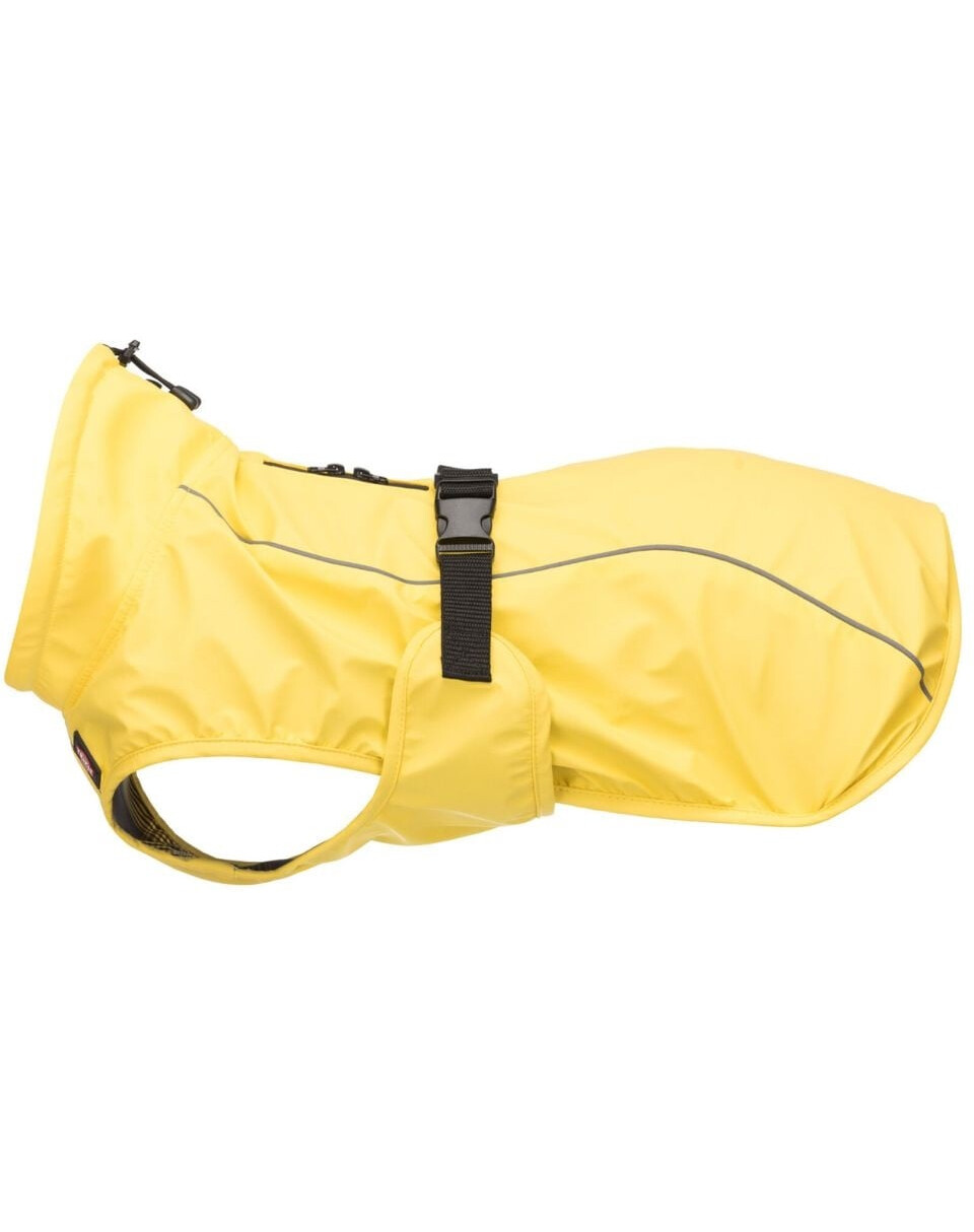 "Vimy" lietpaltis šunims - puiki apsauga nuo lietaus ir vėjo. Iš patvaraus poliuretano ir poliesterio pagamintas lietpaltis turi du neperšlampamus užtrauktukus, kad jį būtų galima lengvai pritvirtinti prie apykaklės ar petnešų. Šviesą atspindintys elementai užtikrina saugumą vaikštant naktį. Dėl kelnių ties apykakle, reguliuojamo pilvo diržo ir kilpų letenoms kailis puikiai prisitaiko prie šuns kūno formų. Be to, dėl lengvai prižiūrimo pamušalo lengva palaikyti švarą. Pasirūpinkite, kad jūsų šuo būtų patogus ir stilingas su "Vimy" kailiu.