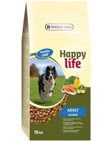 VERSELE-LAGA Happy Life Adult Salmon - puikus ėdalas šunims su jautriomis virškinimo sistemomis - skanus bei lengvai virškinamas maistas su lašiša ir ryžiais vidutinių ir didelių veislių šunims.