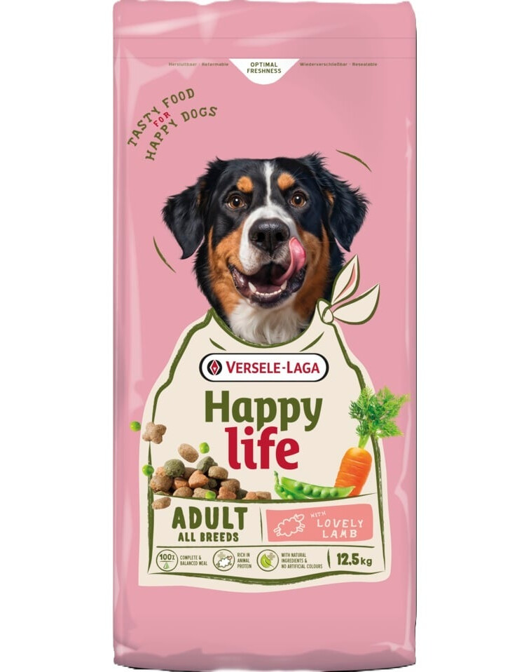 Versele-Laga Happy Life Adult with Lamb yra subalansuotas, pilnavertis sausas maistas su aviena, sukurtas suaugusiems, aktyviems šunims. Jis suteikia visus būtinus maistingus komponentus, įskaitant baltymus, riebalus, vitaminus ir mineralus, kurie palaiko jūsų augintinio sveikatą, energiją ir puikią būklę.