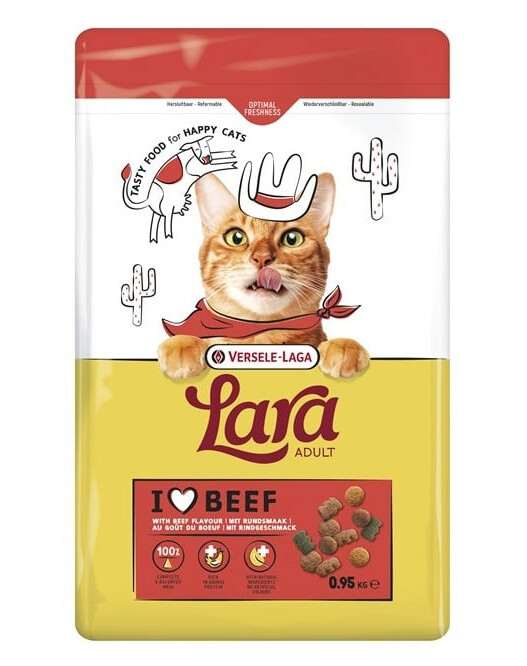 Lara Adult with Beef yra skanus, visiškai subalansuotas sausas maistas, sukurtas suaugusiems katėms, kurios mėgsta sultingos jautienos skonį. Puikiai tinka tiek namų katėms, tiek toms, kurios gyvena aktyvesnį gyvenimo būdą.