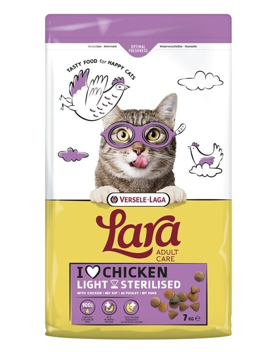Lara Adult Light Sterilized su vištiena yra puikiai subalansuotas maistas suaugusiems katėms po sterilizacijos ir tiems, kurie gyvena ramesnį gyvenimo būdą. Užtikrina optimalų energijos kiekį ir padeda išlaikyti tinkamą svorį, neatsisakant skonio, kurį katės dievina.