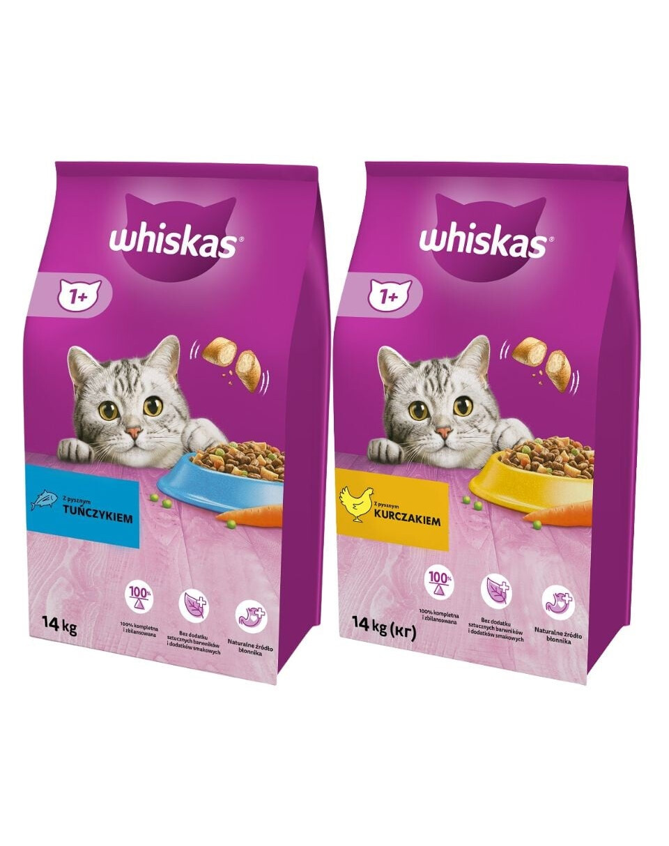 WHISKAS sausas pašaras suaugusioms katėms su tunu yra visavertis, optimalios sudėties ir puikaus skonio maistas. Jų sudėtį sukūrė WALTHAM gyvūnų mitybos centro mitybos specialistai ir veterinarijos gydytojai, o jų sudėtyje yra viskas, kas palaiko jūsų katės funkcijas pagrindinėse srityse. Pridėtas vitaminas A stiprina akis, o Omega-6 riebalų rūgštys ir cinkas skatina sveiką odą ir kailį. Optimalus mineralų kiekis WHISKAS® ėdale padeda jūsų katei ilgus metus išlaikyti sveikus šlapimo takus. Speciali, šiek tiek abrazyvinė granulių struktūra mažina dantų akmenų kaupimąsi ir padeda išsaugoti sveikus jūsų kačių draugo dantis.