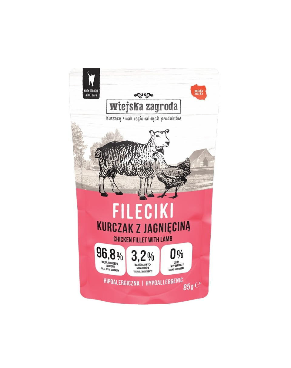 Ieškote natūralaus drėgno maisto katėms, kuris būtų švelnių, sultingų filetikų pavidalu, panardintų į aromatingą padažą? Filetikai Wiejska Zagroda yra puikus pasirinkimas! Kiekviena pakuotė turi kruopščiai atrinktus vištienos ir avienos gabalėlius, kurie užtikrina puikų skonį ir maistingumą. Dėl net 96,8% mėsos, subproduktų ir sultinio, begrūdės formulės ir hipoalerginės sudėties, filetikai tinka net katėms su jautria virškinimo sistema.