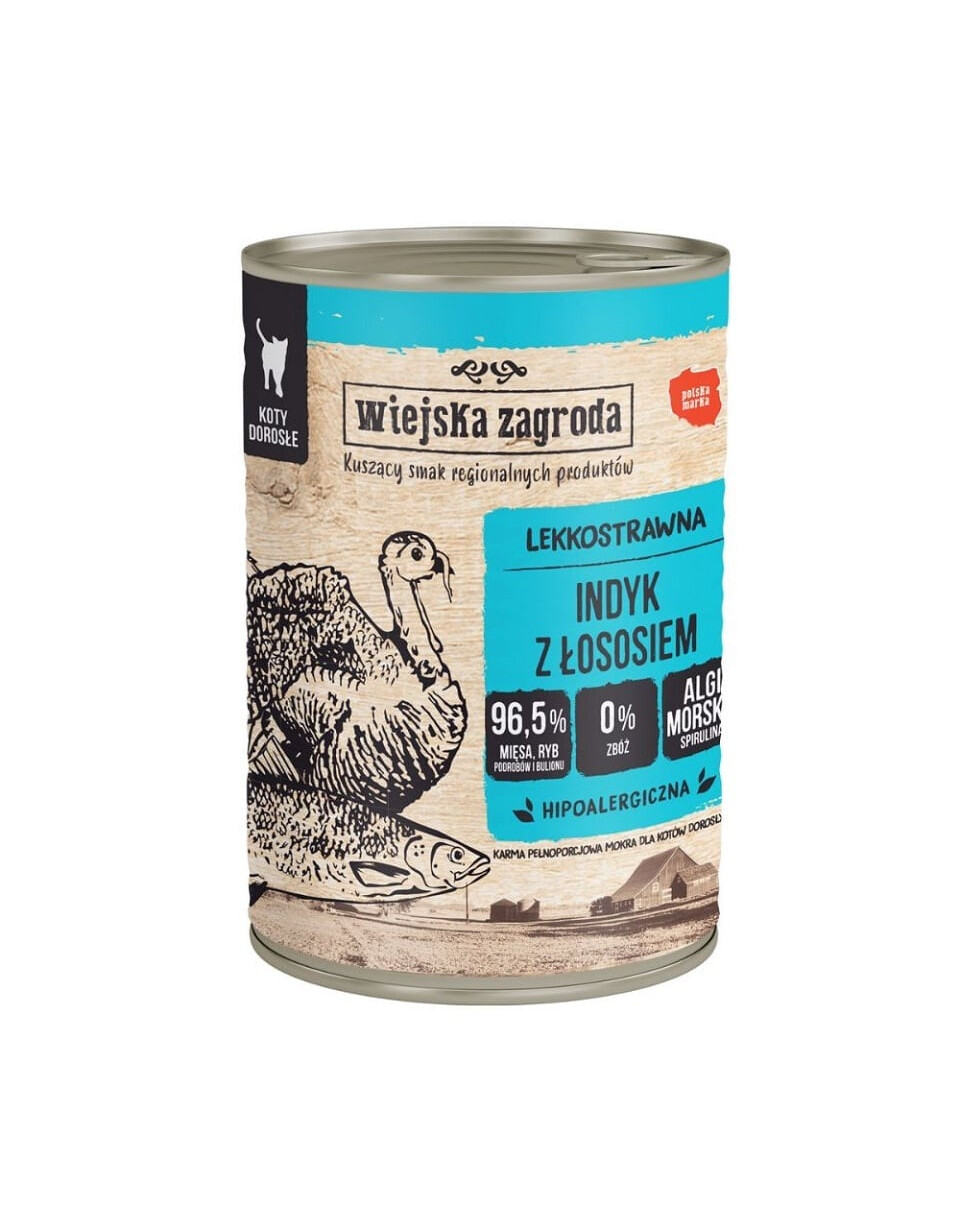 WIEJSKA ZAGRODA Kalakutiena su lašiša - drėgnas kačių ėdalas 12x400g