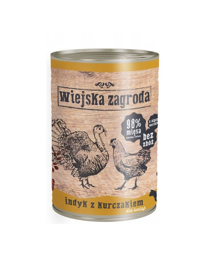 kalakutiena 35 % (iš jų apie 80 % raumenų ir širdies mėsos, apie 20 % kepenų), vištiena 35 % (100 % raumenų mėsos), kalakutienos ir vištienos sultinys 28,4 %, mineralai 1 %, lašišų aliejus 0,5 %, spirulina 0,1 %.
