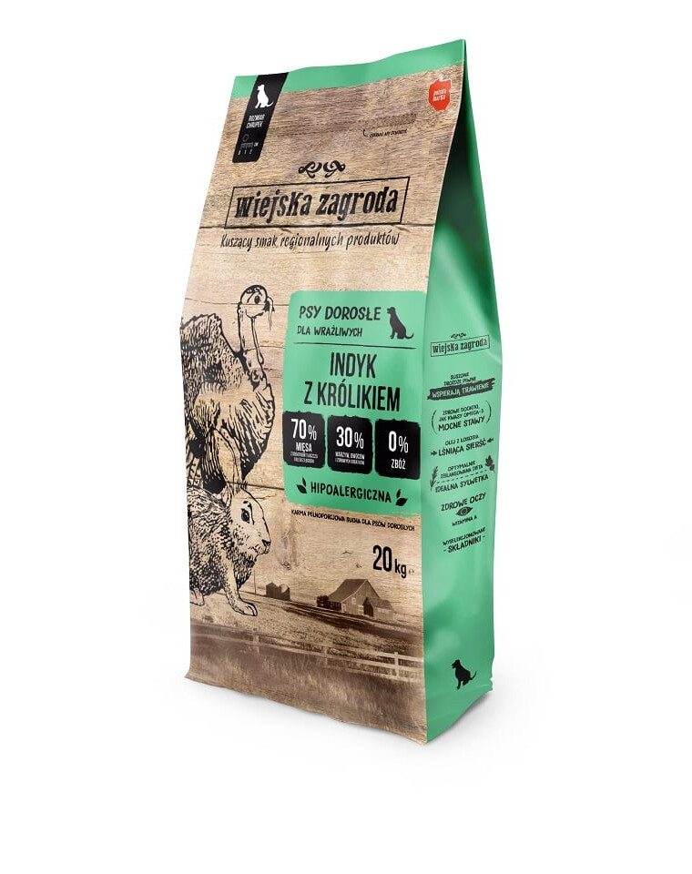 Wiejska Zagroda - tai lenkiškas visavertis šunų maistas, paruoštas itin kruopščiai. Vietinių tiekėjų regioniniai produktai - tai šviežumo ir ingredientų, iš kurių ruošiame maistą, kokybės garantija. Maistas sukurtas iš poreikio duoti mūsų šunims tai, ko jiems labiausiai reikia - mėsos!