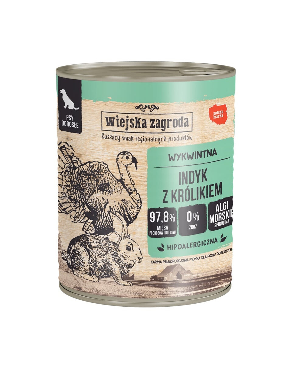 Pagrindą sudaro kruopščiai parinktos mėsos ir subproduktų pora. Tai svarbiausi ir vertingiausi ingredientai, kurie yra panardinti į aromatingą sultinį. Švelnaus ir sultingo triušio derinys su lengvai virškinamu kalakutu yra puikus pasirinkimas kiekvienam šuniui, net ir tam, kuris turi jautrią skrandį.