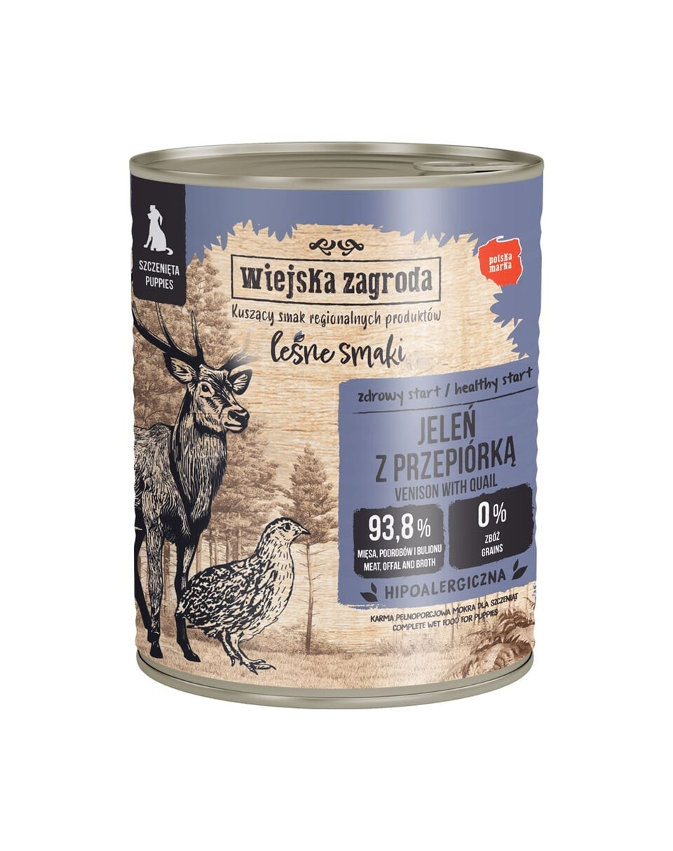 WIEJSKA ZAGRODA Miško skoniai Elnienos ir putpelių šlapias maistas šuniukams 24x800 g