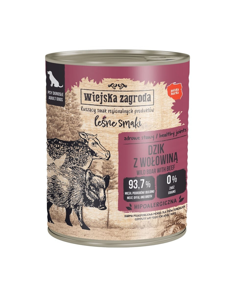 WIEJSKA ZAGRODA Miško skoniai Šernas su jautiena šlapias šunų maistas 12x800 g