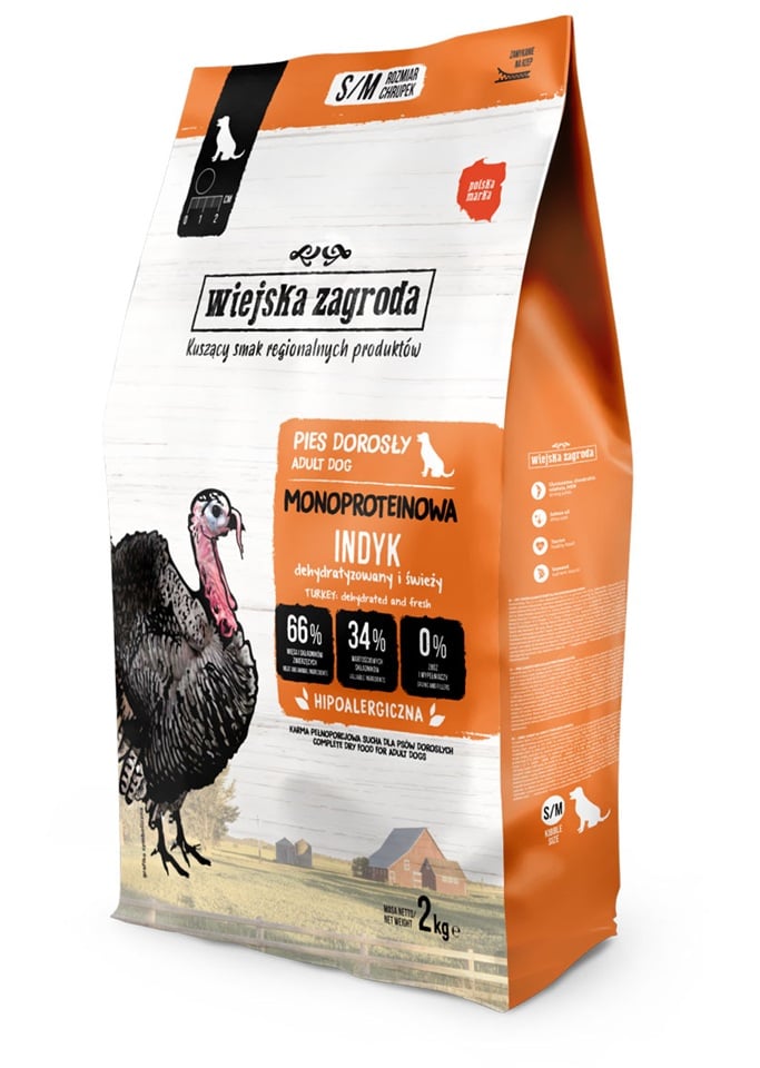 Linija monoproteininių pašarų iš Wiejskiej Zagrody yra subalansuoti pašarai, skirti šunims, turintiems jautrią virškinimo sistemą ir linkusiems į alergijas. Naudojant tik vieną gyvūninio baltymo šaltinį, be grūdų ir ankštinių augalų, sumažėja nepageidaujamų reakcijų į maistą rizika, o daugybė sveikatai naudingų priedų palaiko tinkamą virškinimą ir gali palengvinti uždegiminius procesus, sukeltus alergijos ar pasikartojančių skrandžio problemų. Pašarų ingredientai taip pat palaiko odos sveikatą ir sąnarių ligų prevenciją.