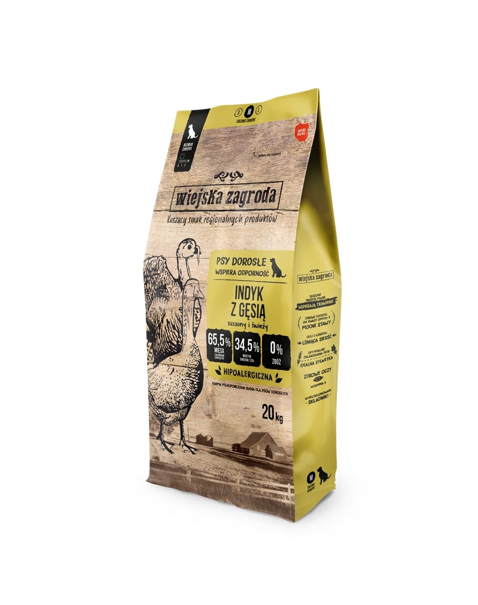 Wiejska Zagroda yra lenkų, paruošta su didžiausia atsakomybe visavertė maisto produktas šunims. Regioniniai produktai iš vietinių tiekėjų garantuoja ingredientų šviežumą ir kokybę, iš kurių mes ruošiame mūsų maistą. Maistas buvo sukurtas atsižvelgiant į tai, ko mūsų šunims labiausiai reikia, tai yra mėsos ir gyvūninių ingredientų!