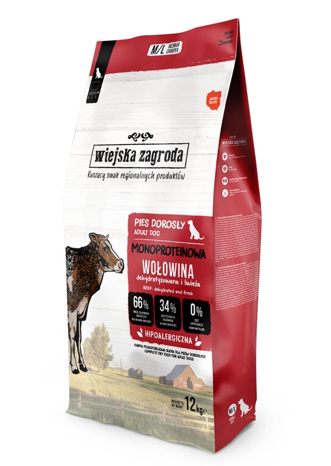 Monoproteininiai maisto produktai suteikia visus maistingus komponentus, reikalingus suaugusio šuns organizmo tinkamam funkcionavimui. Aukštas mėsos ir gyvūninių ingredientų kiekis – 66% ir didelis gyvūninio baltymo kiekis leidžia išlaikyti sveiką raumenų masę, o subalansuotas riebalų kiekis užtikrina energiją, reikalingą kasdienei veiklai. Daržovės ir vaisiai papildo receptą vertingomis vitaminais ir mineralais, rūpindamiesi regėjimu, oda, nervų sistema ir kepenimis.
