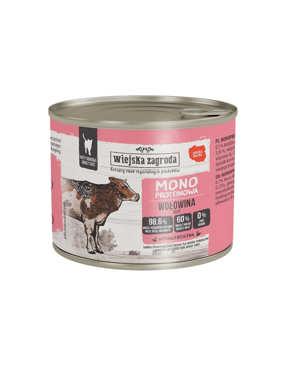 WIEJSKA ZAGRODA Vienos rūšies baltymų jautienos šlapias kačių maistas 12x200 g