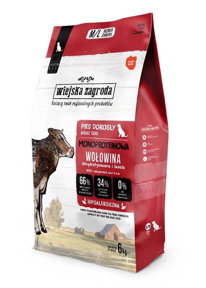 Monoproteininiai maisto produktai suteikia visus maistinių medžiagų, reikalingų suaugusio šuns organizmo tinkamam funkcionavimui, komponentus. Aukštas mėsos ir gyvūninių ingredientų kiekis – 66% ir didelis gyvūninio baltymo kiekis leidžia išlaikyti sveiką raumenų masę, o subalansuotas riebalų kiekis užtikrina energiją, reikalingą kasdienei veiklai. Daržovės ir vaisiai papildo receptą vertingomis vitaminais ir mineralinėmis medžiagomis, rūpindamiesi regėjimu, oda, nervų sistema ir kepenimis.