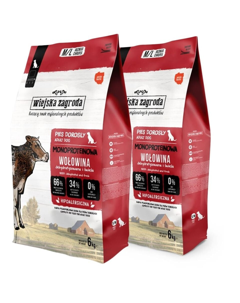 Monoproteininių maisto linija iš Kaimo Sodybos yra subalansuoti maisto produktai, skirti šunims, turintiems jautrią virškinimo sistemą ir linkusiems į alergijas. Naudojant tik vieną gyvūninio baltymo šaltinį, be grūdų ir ankštinių augalų, sumažinama nepageidaujamų reakcijų į maistą rizika, o daugybė sveikatai naudingų priedų padeda palaikyti tinkamą virškinimą ir gali sumažinti uždegiminius procesus, sukeltus alergijos ar pasikartojančių skrandžio problemų. Maisto ingredientai taip pat palaiko odos sveikatą ir sąnarių ligų prevenciją.
